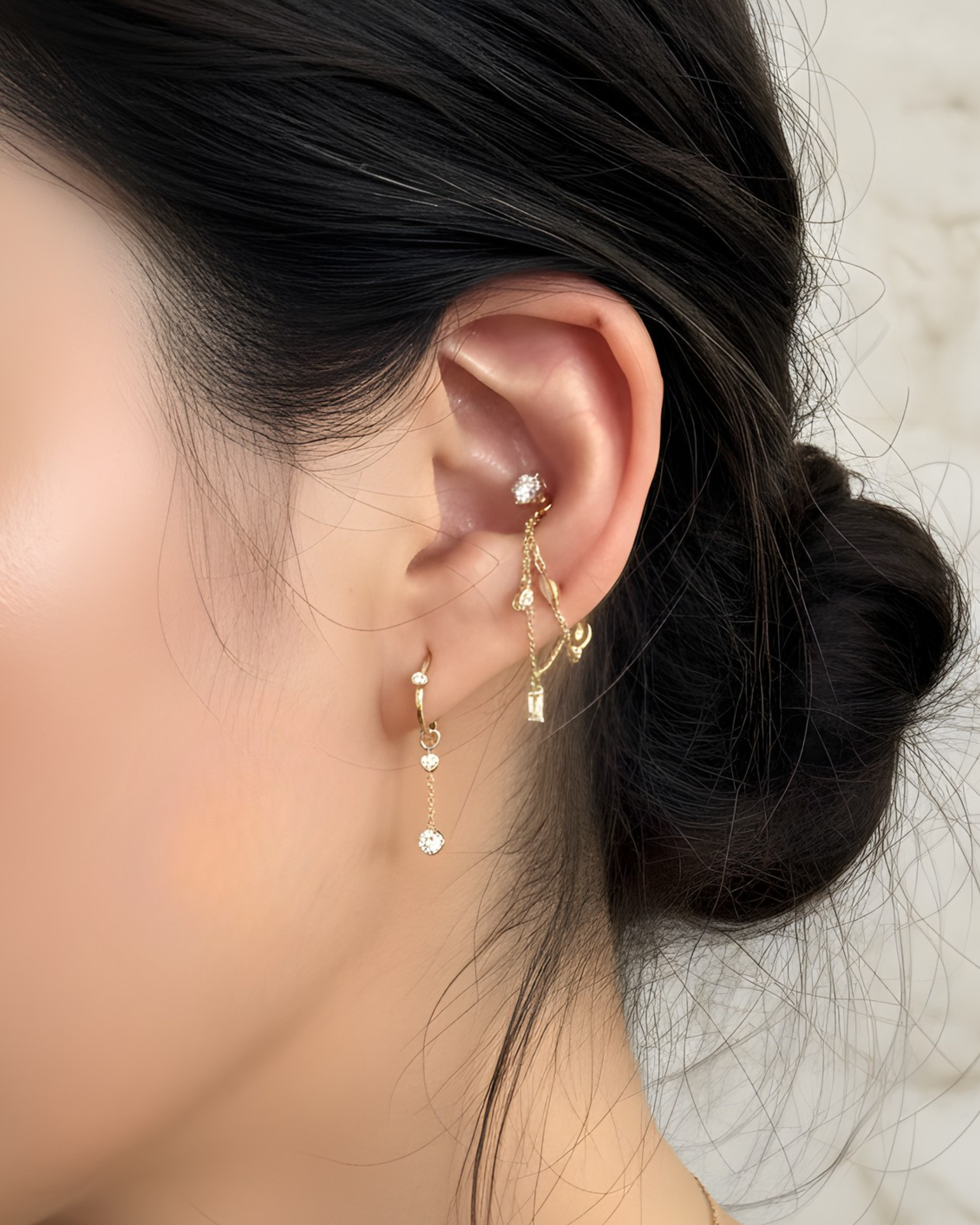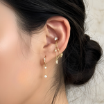 Delicate and elegant, this Double Diamond Chain features two sparkling diamonds on a fine chain, designed to attach to a hoop or a stud, creating a graceful, flowing silhouette perfect for day-to-night wear.