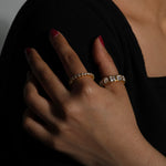 For the ultimate in understated style, why not pair our Cherry Full Eternity Ring with some Modernist Tennis Earrings or Labrets - the three-prong setting matches back and stacks up to itself perfectly, so you can always add another layer.