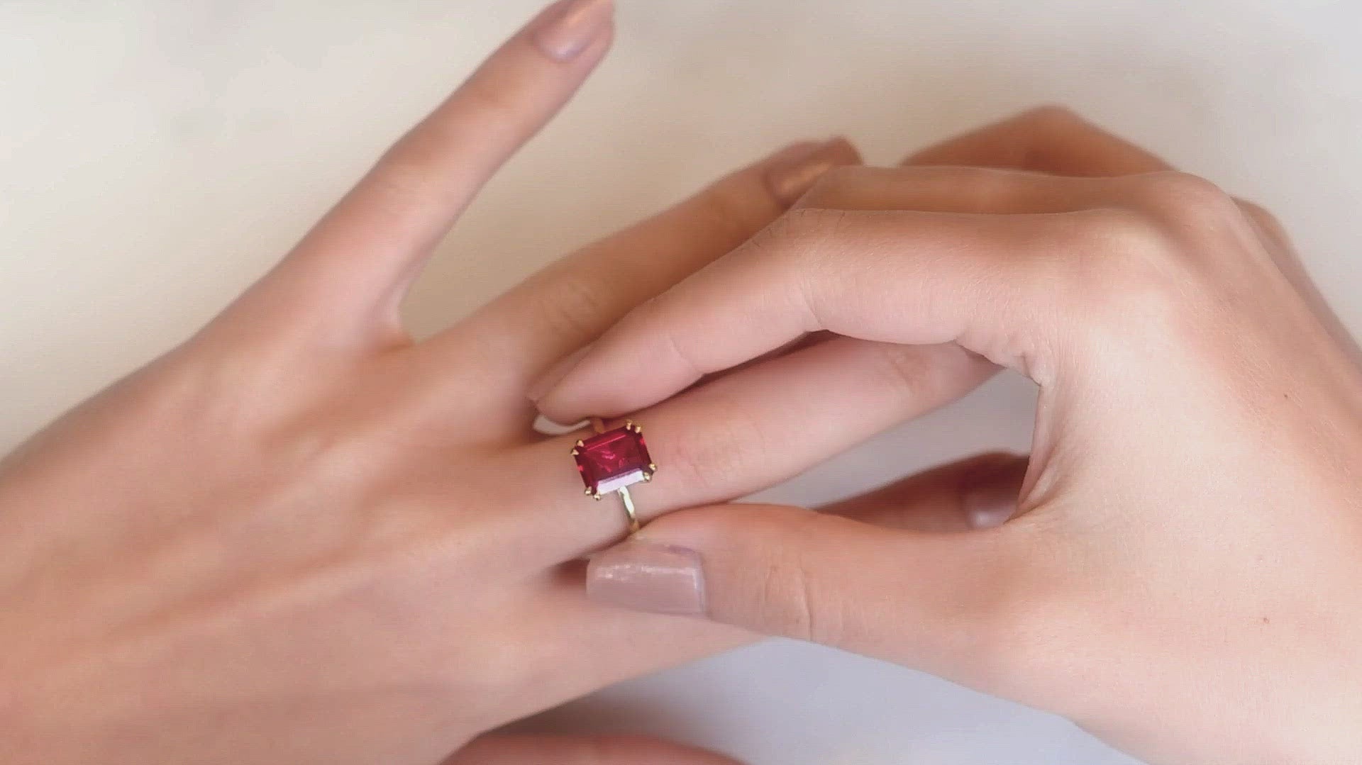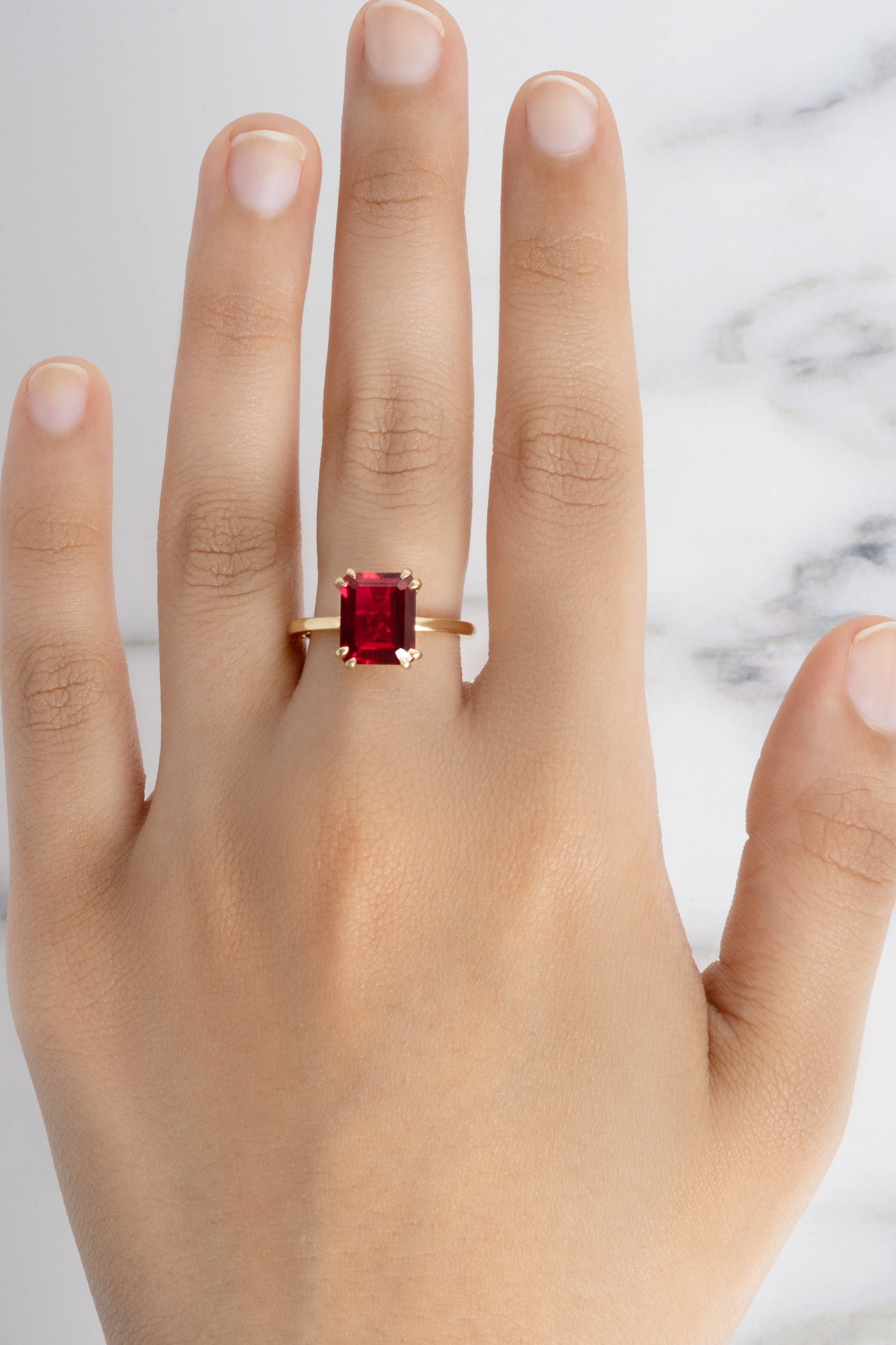 Like the evening sun fills the sky with warm reds at sunset, this beautiful Flora Ruby Octad Cocktail Ring in 18K Gold will embrace your hands with warmth and magnetism. Set with double talon claws for a contemporary twist.