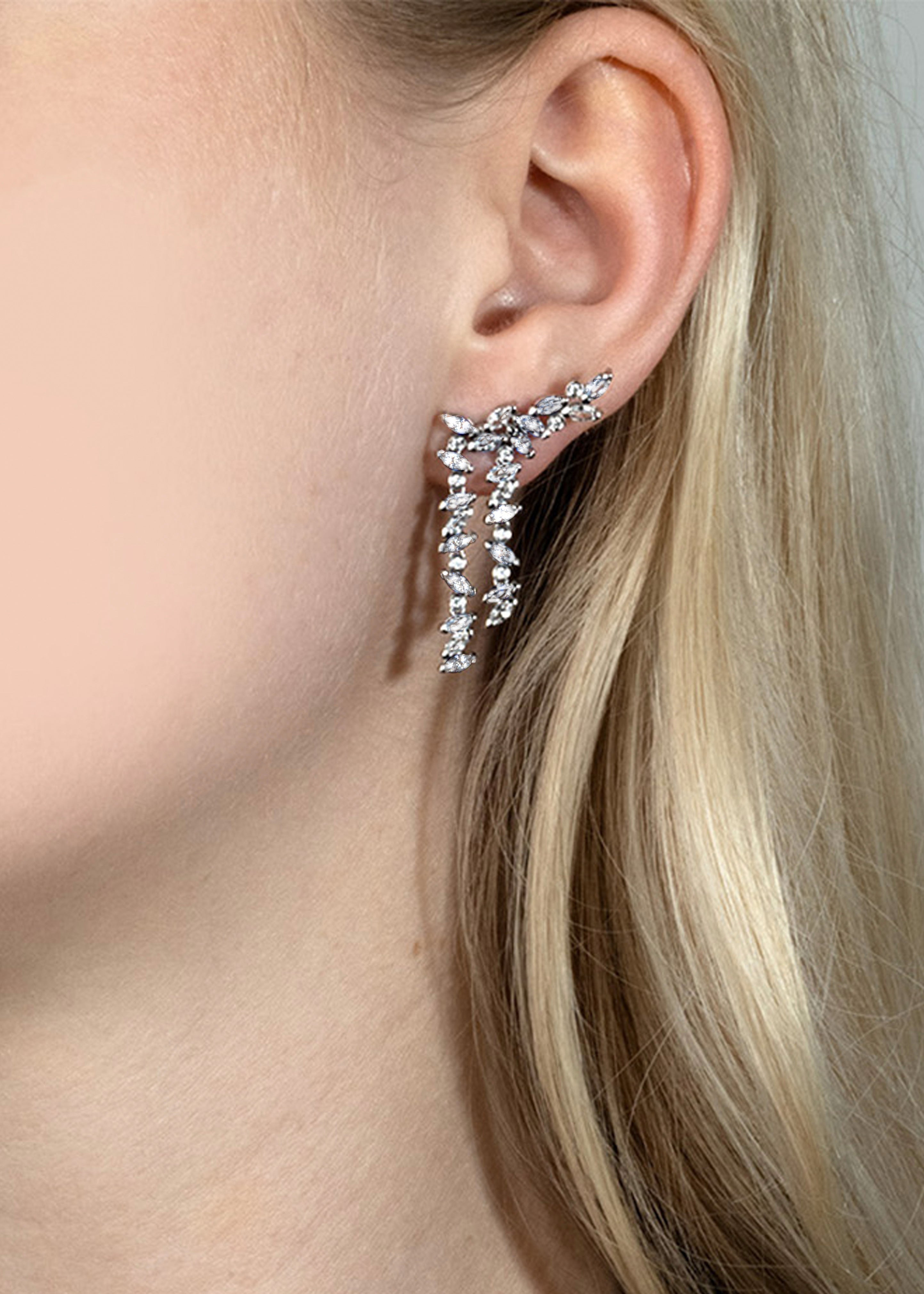 With a swish of the head, people will most definitely swoon over these Veto Double Falling Leaves Earrings. Featuring top quality lab grown diamonds in brilliant round and marquise cuts, the double drop adds extra appeal when you want to be anything but ordinary.