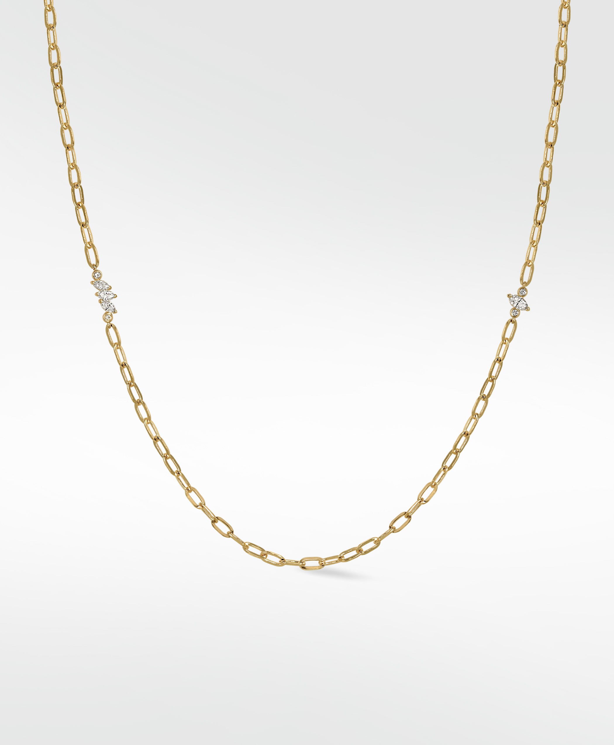 The Veto Ignis Delicate Diamond Necklace is a timeless piece of refined elegance. The slender chain frames the diamonds beautifully, allowing them to shine on their own or layered effortlessly for a sophisticated, modern look. Perfect for everyday wear or special occasions, it’s a subtle statement of enduring luxury. Style it your way- as an elegant necklace or a lariat accented with a charm.